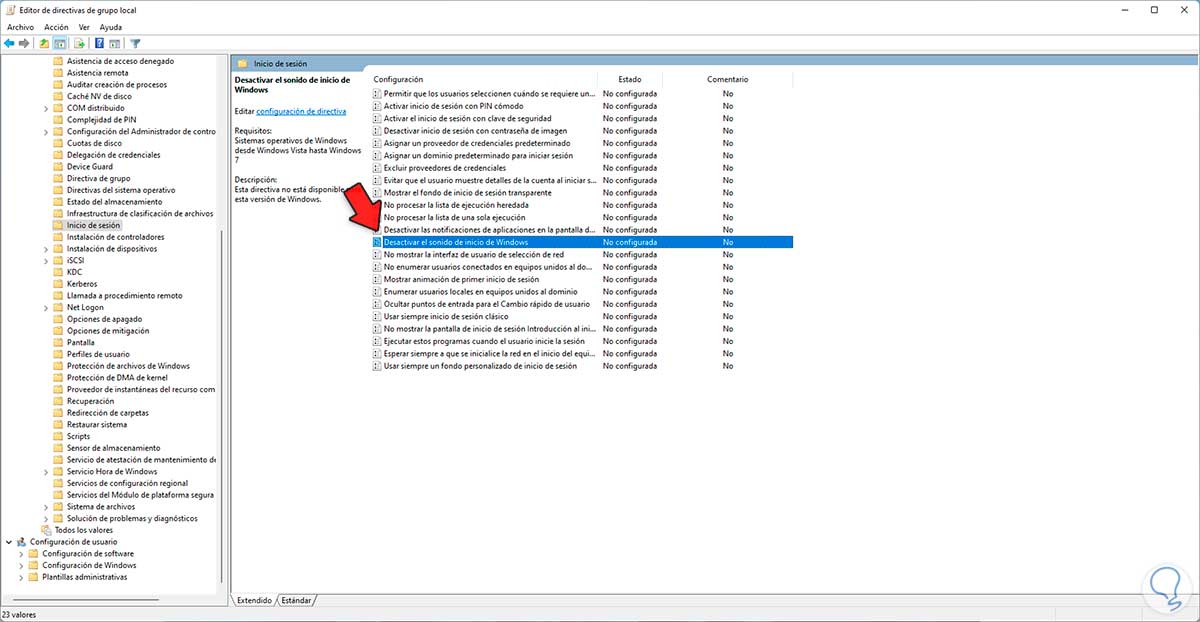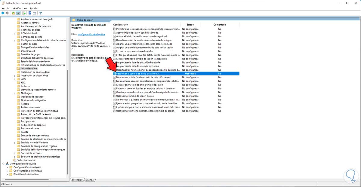2. Quitar Sonido de Inicio Windows 11 GPO