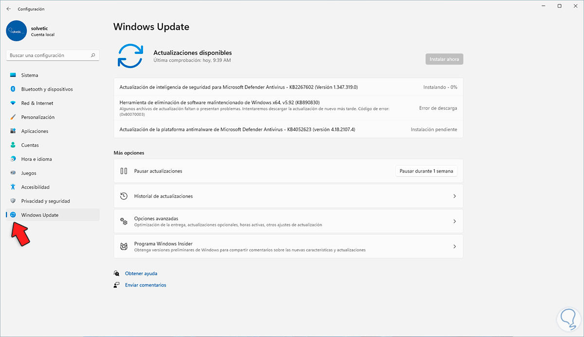 Allí podemos cambiar el canal actual de Insider, desde Windows Update es posible comprobar actualizaciones incluyendo las nuevas versiones de Windows 11 disponibles: