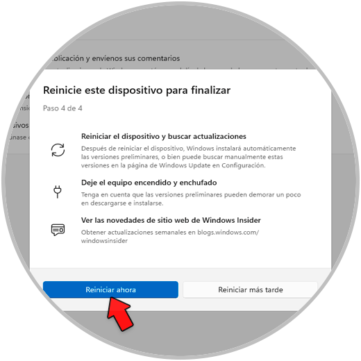 Damos clic en “Reiniciar ahora” para reiniciar Windows 11 y completar el proceso: