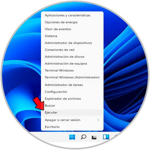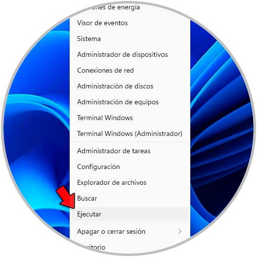 Finalmente Ejecutar debe estar presente, abre Ejecutar desde el menú contextual de Inicio:
