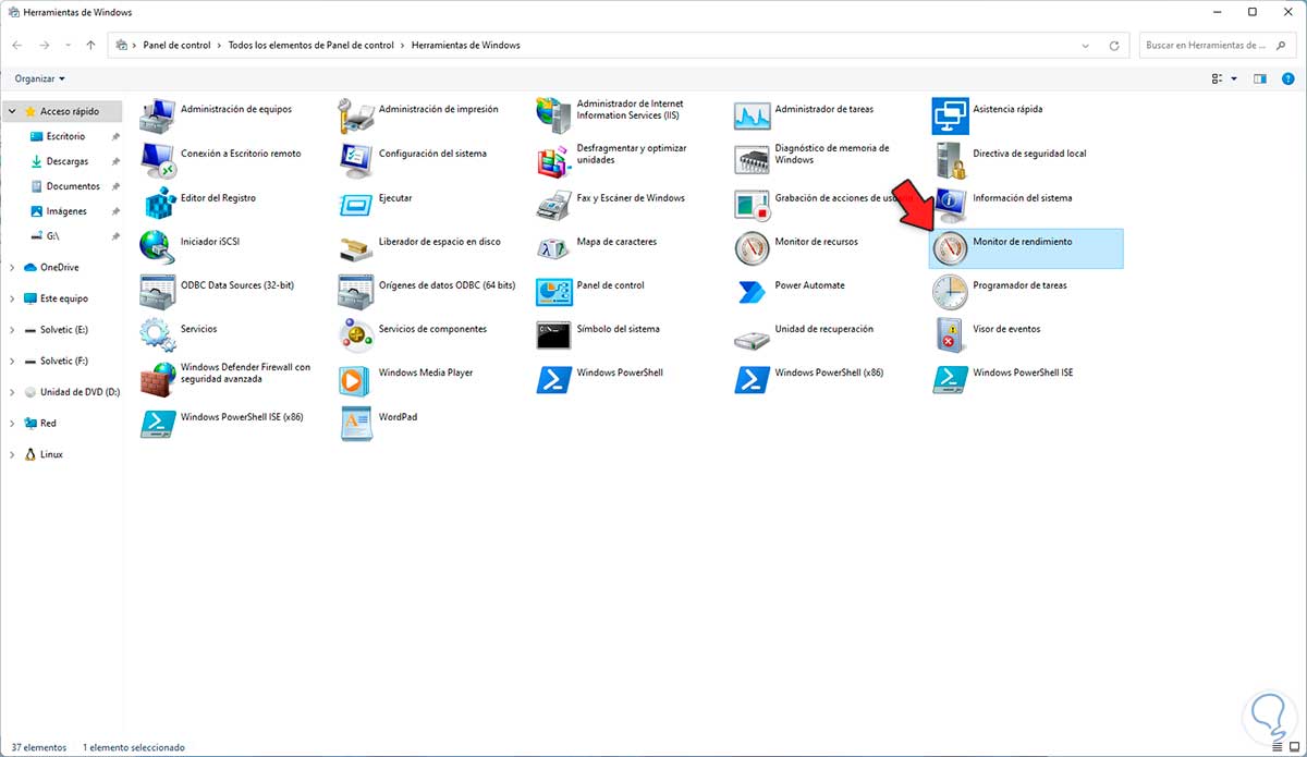 2. Abrir Monitor de Rendimiento Windows 11 desde Panel de control