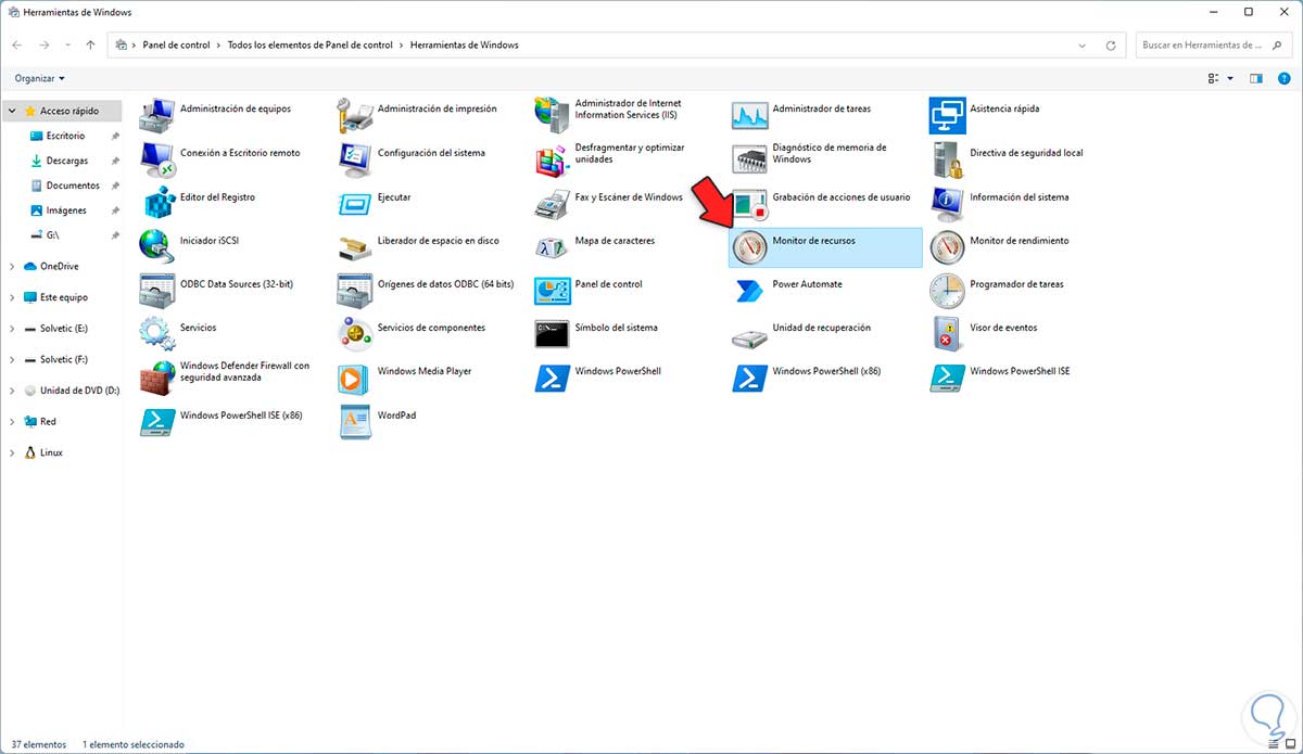 5. Abrir Monitor de Recursos Windows 11 desde Panel de control