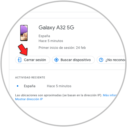 Selecciona el dispositivo en el que que quieres cerrar la sesión y desvincular. Una vez dentro pulsa sobre “Cerrar sesión”.