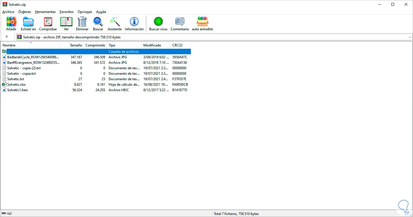 En la ventana emergente veremos el contenido del archivo ZIP: