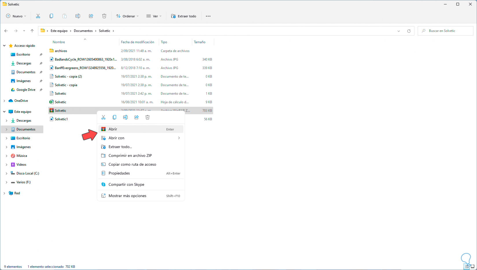 Otra de las opciones a usar es dar clic derecho sobre el ZIP y seleccionar "Abrir":