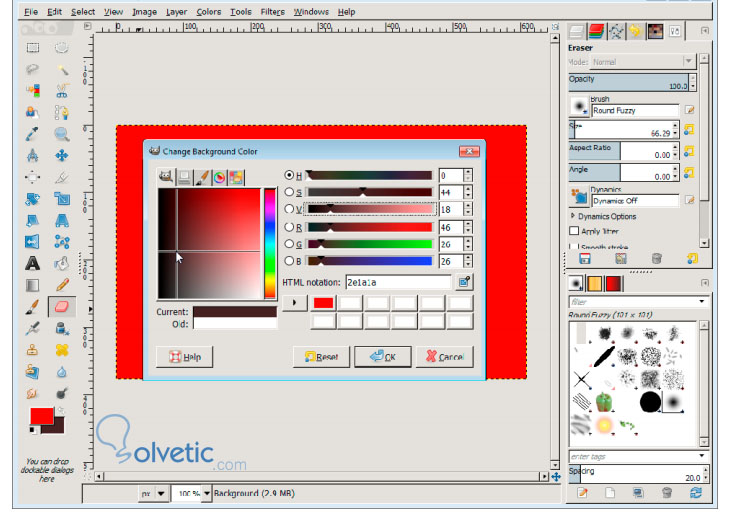 Borrar en Gimp no es simplemente eliminar elementos del canvas o lienzo, de hecho es algo que va un poco más allá, podríamos llegar a ver al borrador como una brocha alternativa, esto es porque aparte que deshace el elemento sobre el que se aplica, si hemos seleccionado un color alternativo va a colorear el área de este color.
