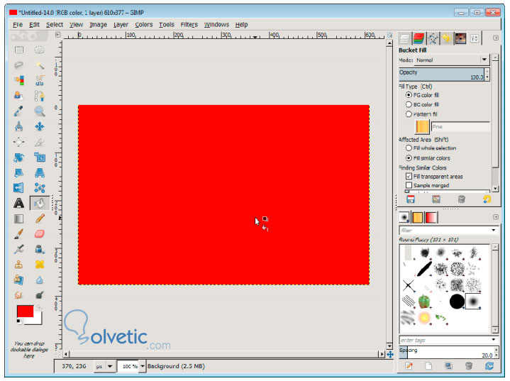 2- Al crear la nueva imagen veremos que tenemos en la caja de herramientas, la herramienta de colores, donde el color primario es negro y el secundario es blanco, vamos a cambiar el negro por otro color, en el caso de este ejemplo escogimos el rojo.