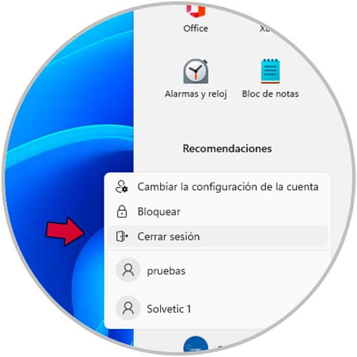 Otra de las opciones para usar las opciones de arranque avanzadas es desde la pantalla de bloqueo, si usas este método debemos cerrar la sesión actual de Windows 11: