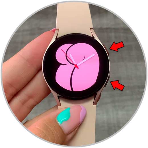 En primer lugar, mantén pulsados de manera simultánea ambos botones laterales del Samsung Galaxy Watch 4.