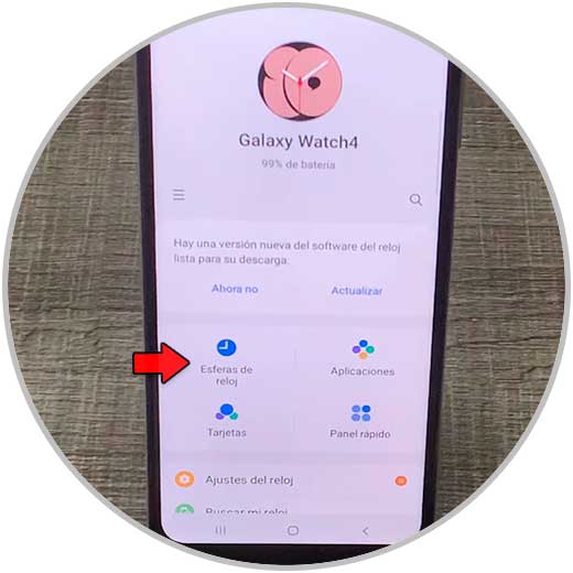 Lo primero que tendremos que hacer será entrar en la App “Galaxy Wearable” desde el móvil para configurar este aspecto. Una vez hecho, pulsamos en “Esferas del reloj”.