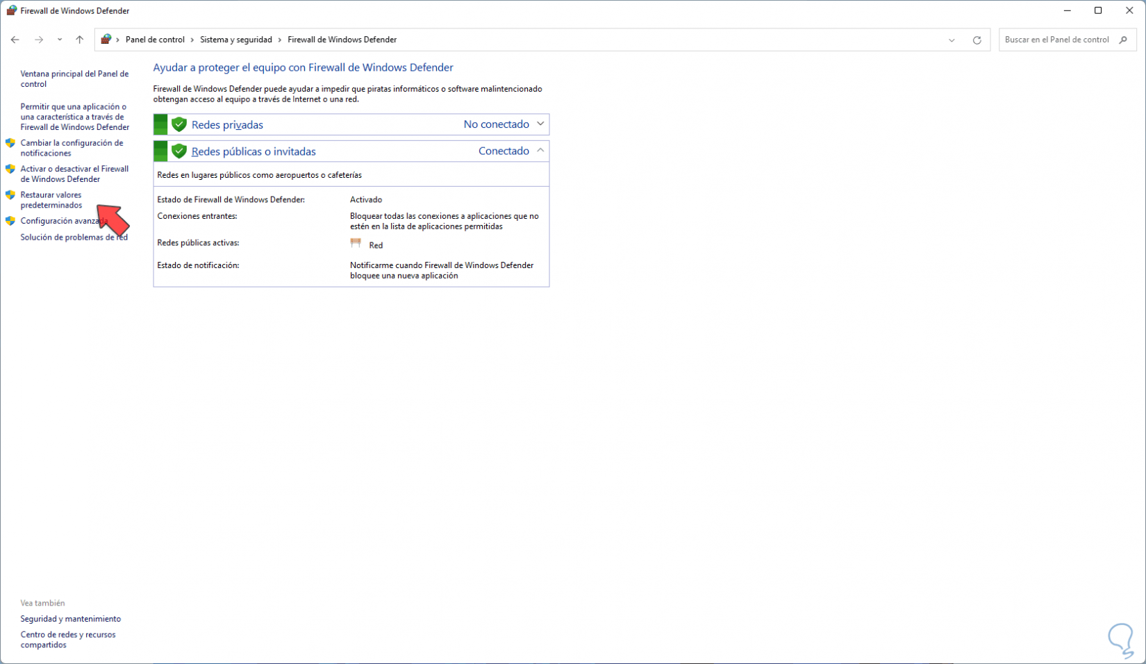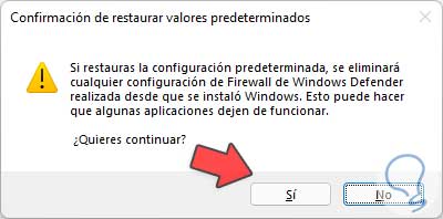 Será abierta la siguiente ventana. Da clic en "Restaurar firewalls a los valores predeterminados".