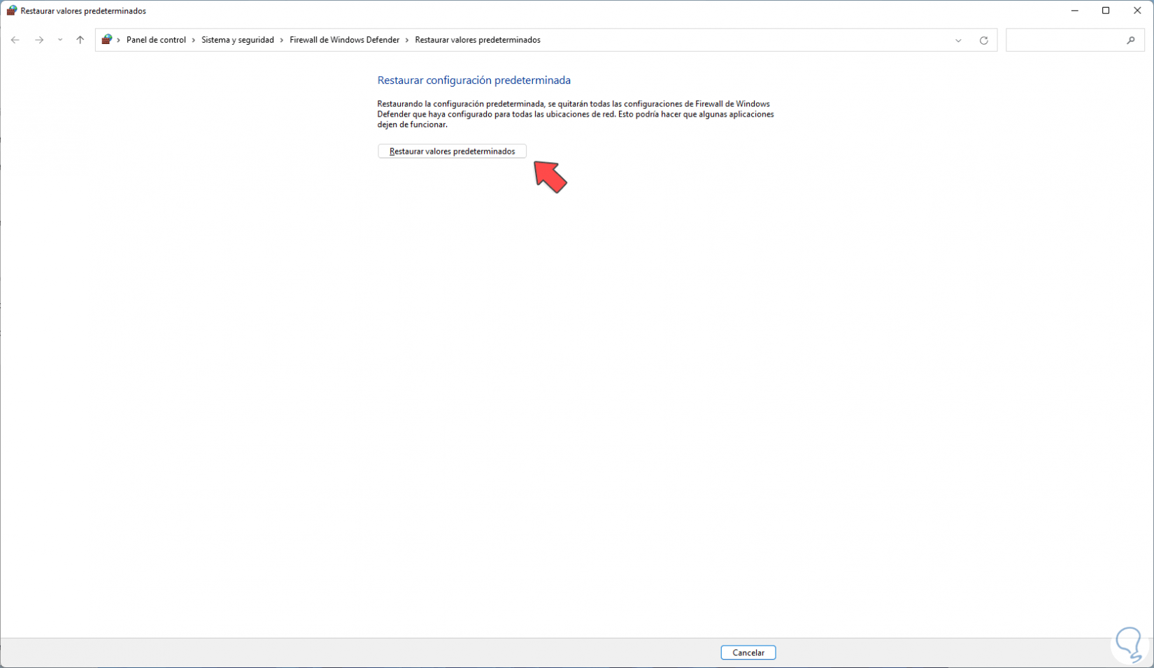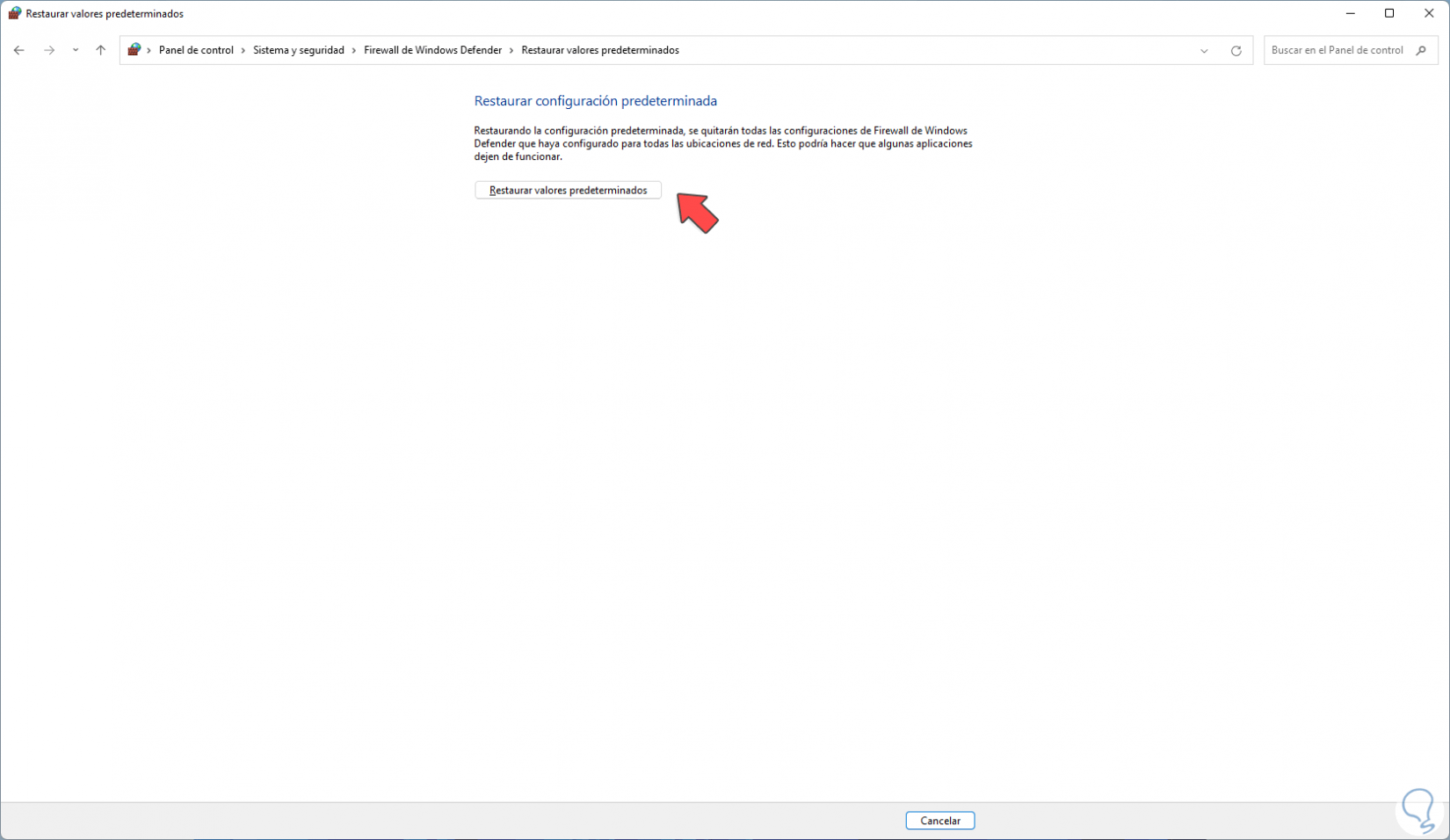 2. Restaurar Firewall Windows 11 desde Panel de control
