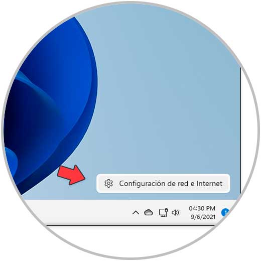 Esta es otra de las opciones a usar, damos clic derecho sobre el icono de red en la barra de tareas y seleccionamos la opción "Configuración de red e Internet":