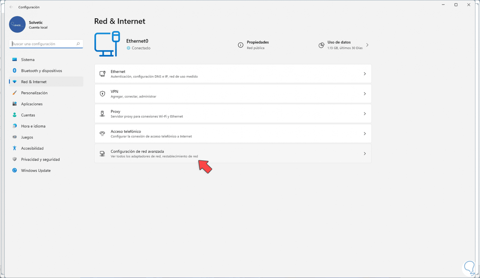 Veremos lo siguiente. Damos clic en "Configuración de red avanzada"