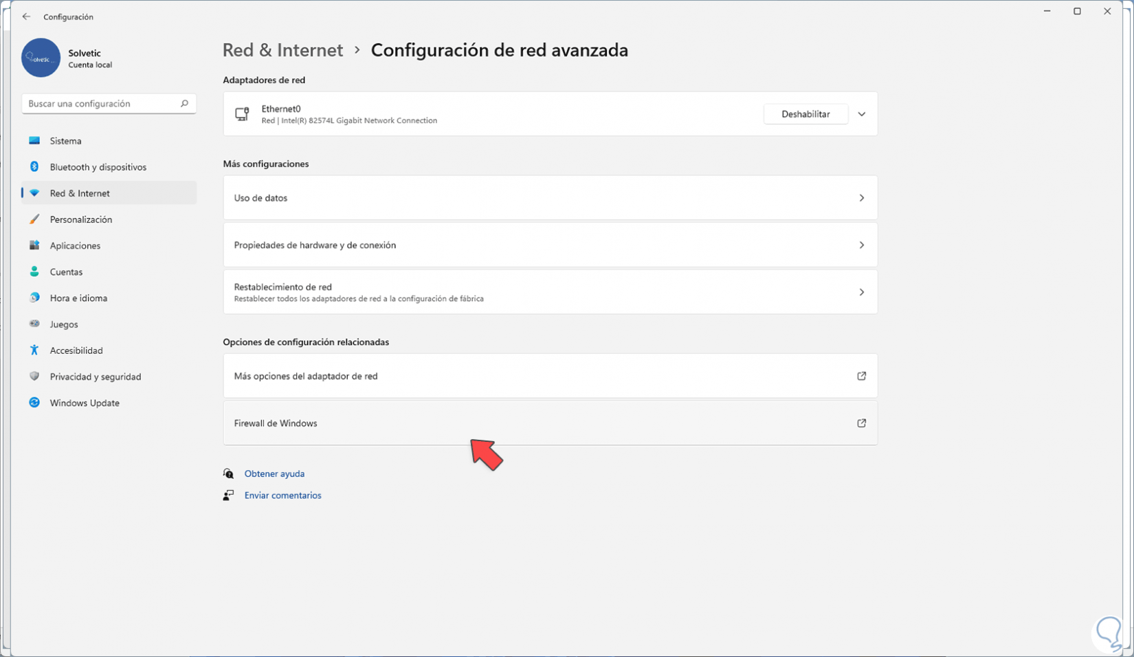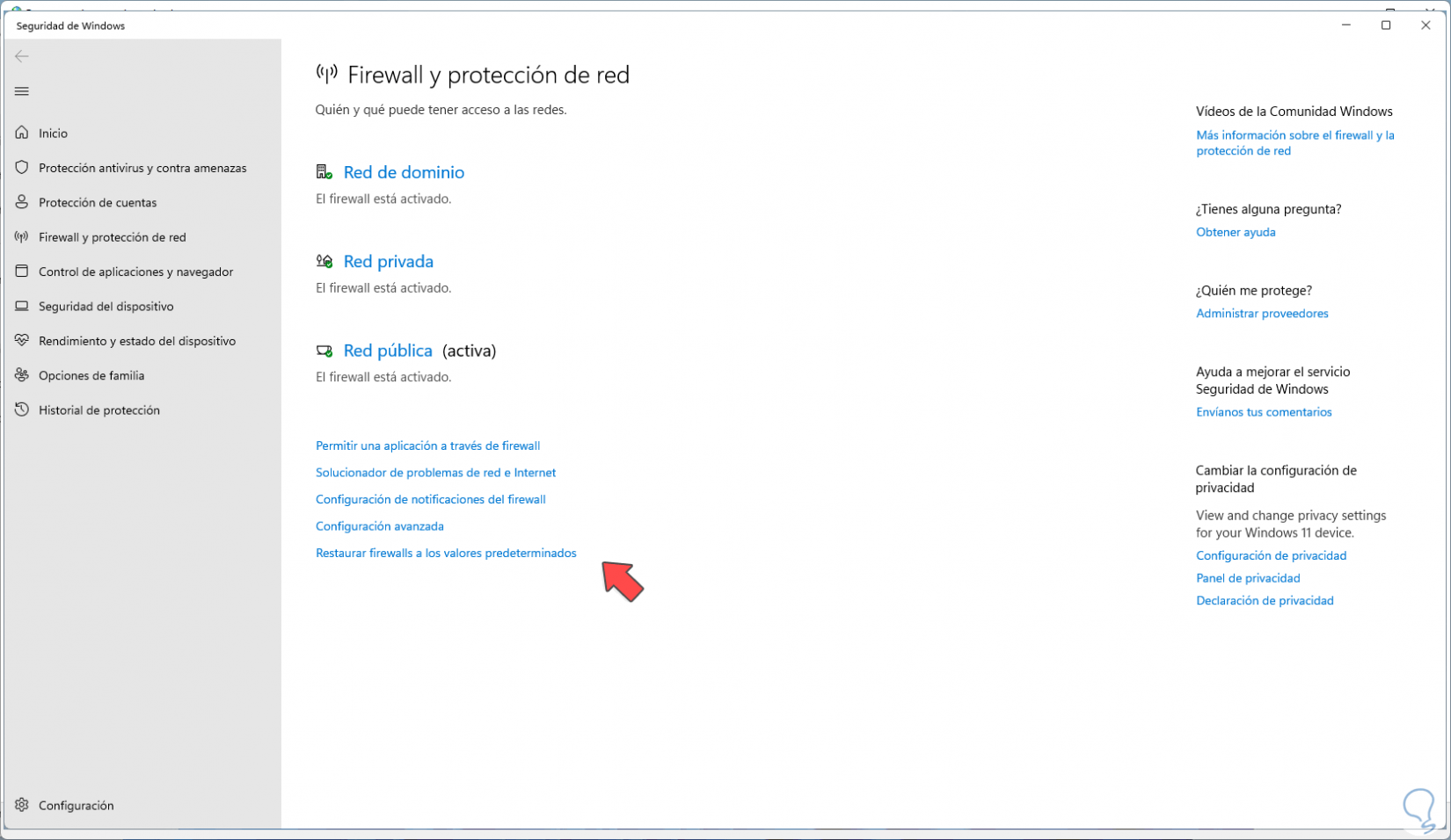 3. Restaurar Firewall Windows 11 desde Configuración de red