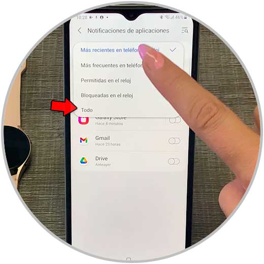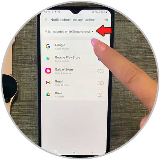Para ver todas las notificaciones, pulsa en la parte superior en la flecha junto a “Más recientes en el teléfono o reloj”.