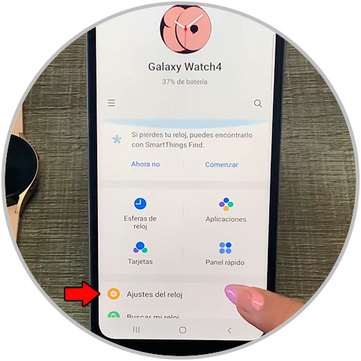 Antes de nada, entra en la App Samsung Wearable, la cual habrás tenido que descargar anteriormente para vincular tu reloj con tu terminal móvil. Una vez hecho, entra en “Ajustes del reloj”.