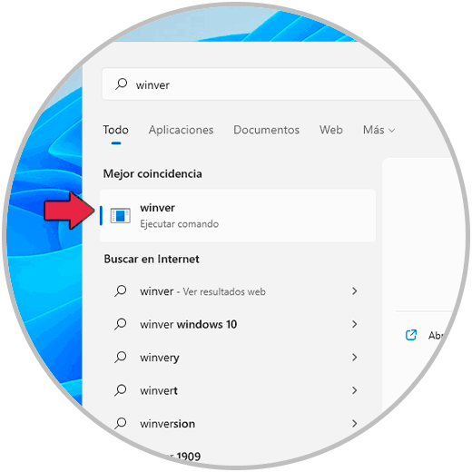 En primer lugar, validaremos la versión de Windows 11, para ello en el menú Inicio ingresa "winver":
