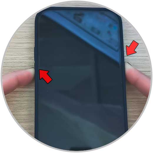 - Lo siguiente que debes hacer es pulsar de manera conjunta durante unos segundos los botones de bajar el volumen y el de encendido/apagado del teléfono.