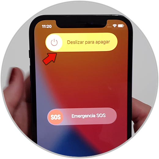 Para finalizar se podrá ver una pestaña donde aparece el icono de apagar y un mensaje indicando "Deslizar para apagar" por lo que debemos realizar este gesto hacia la derecha de la pantalla.