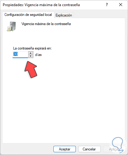 Asigna el periodo de uso de la contraseña en la sección “La contraseña expirara en” y luego aplica los cambios: