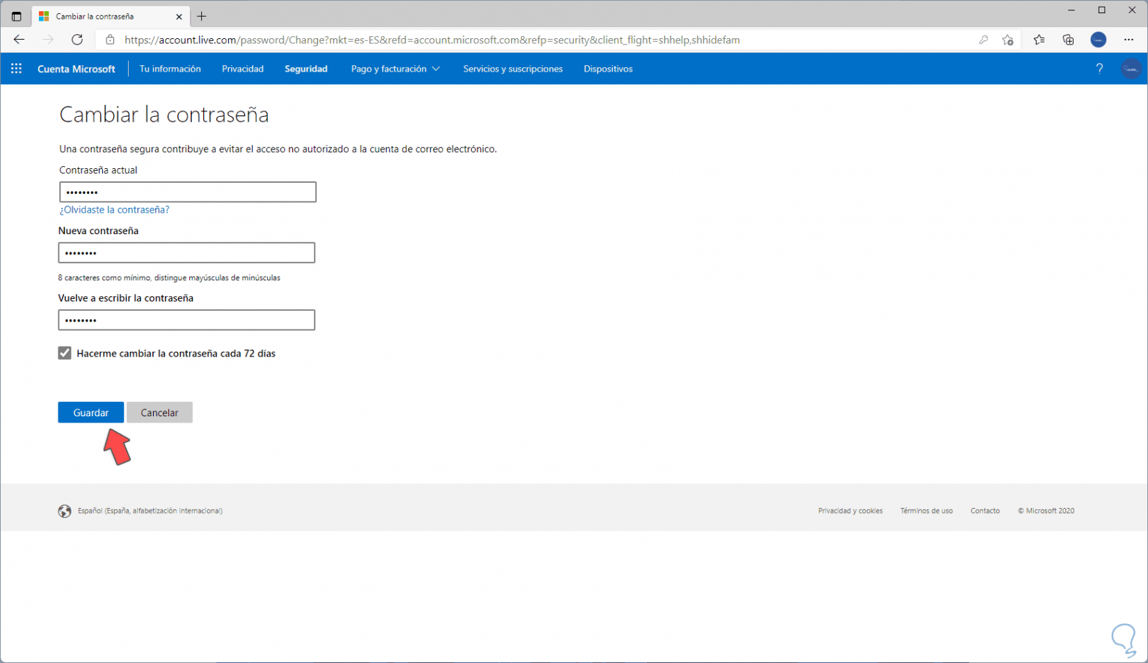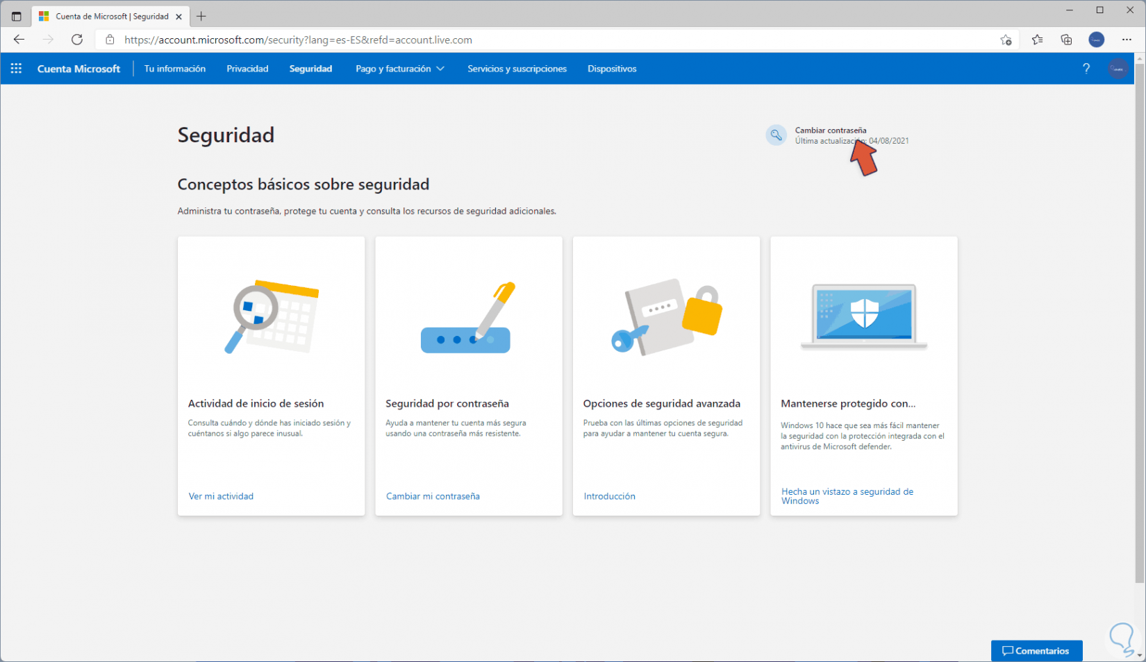 Esta opción aplica para las cuentas en línea que inician sesión en Windows 11, en este caso debemos ir a la URL de Microsoft:
