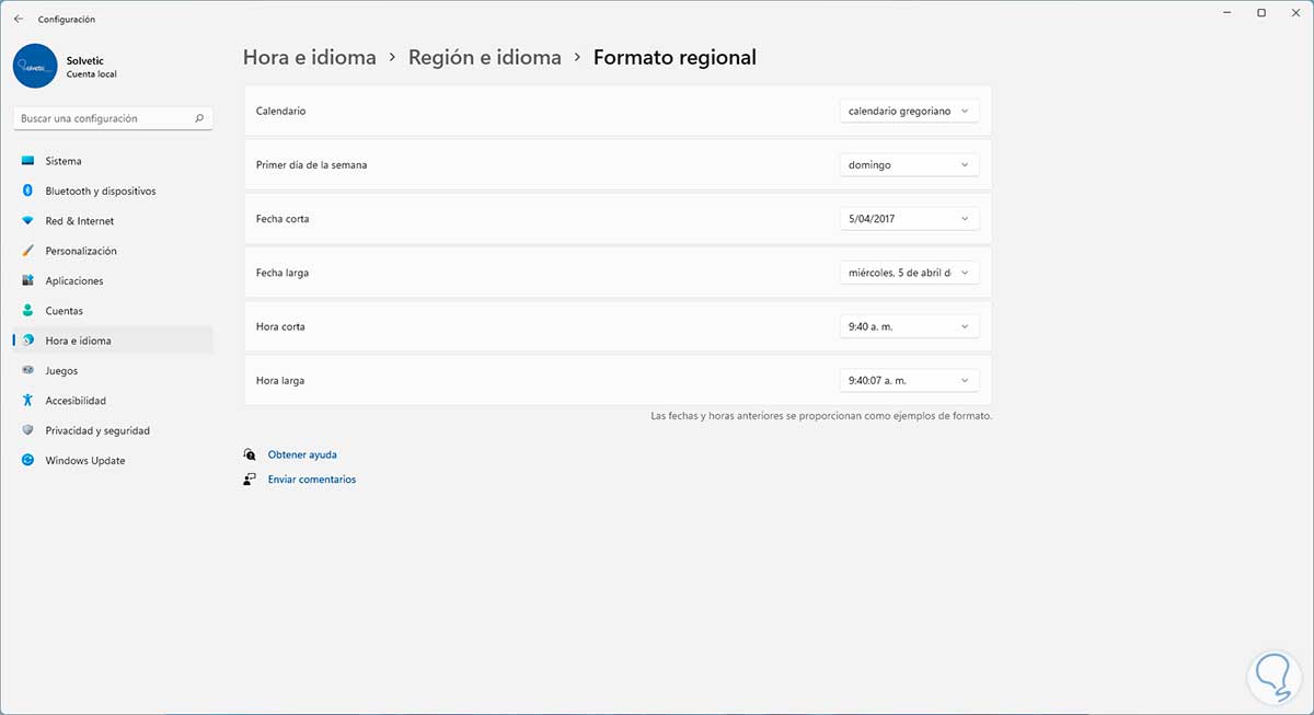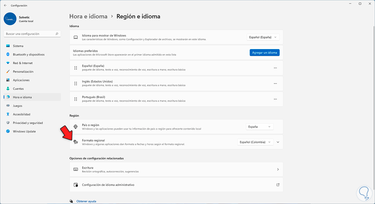 Veremos las siguientes opciones. Seleccionamos "Formato regional"