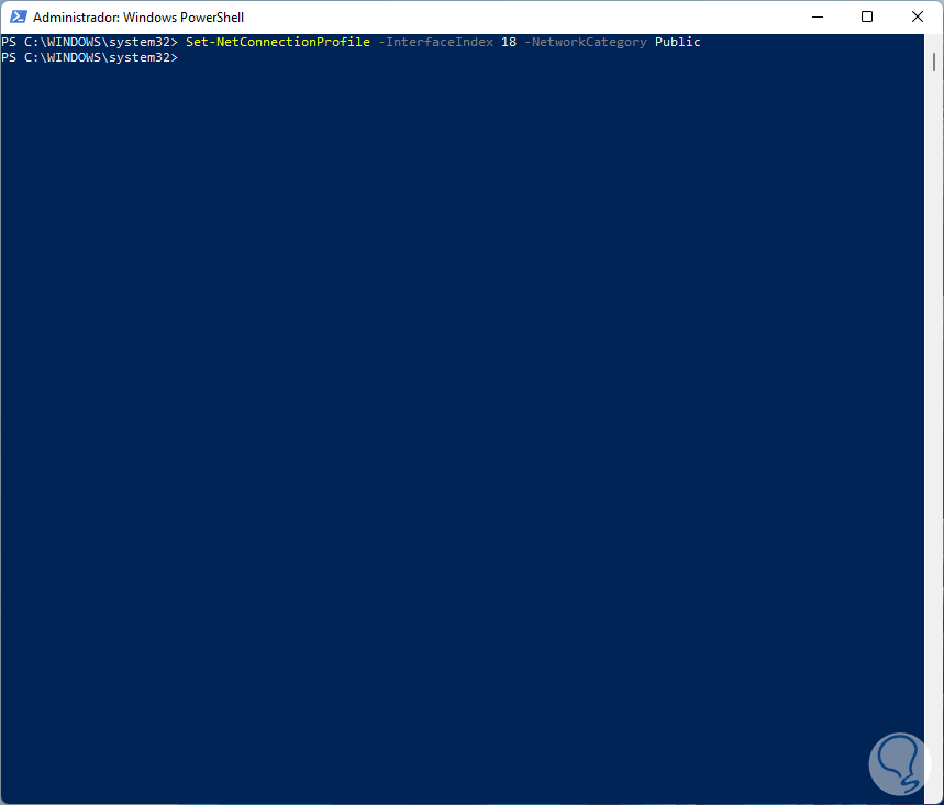 Set-NetConnectionProfile -InterfaceIndex "ID" -NetworkCategory "Nueva red"