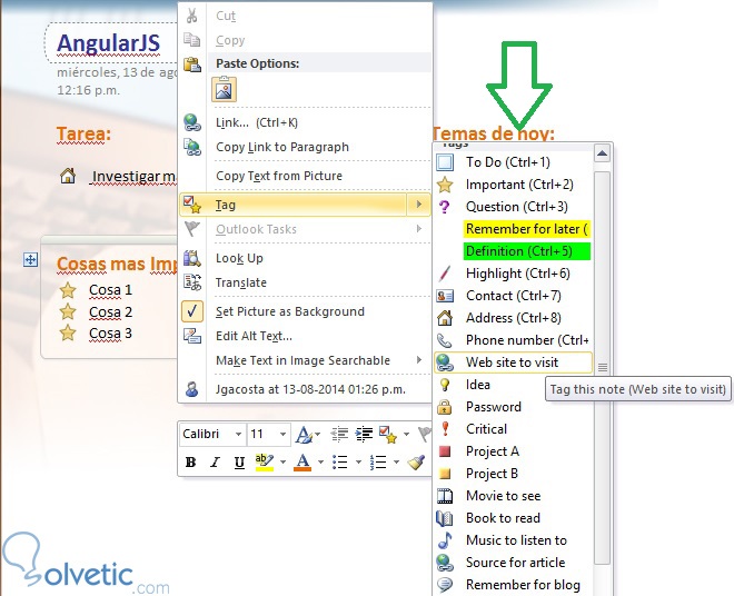 3- Luego podemos agregar otra Nota, probaremos con Sitio web que visitar, veamos como queda: