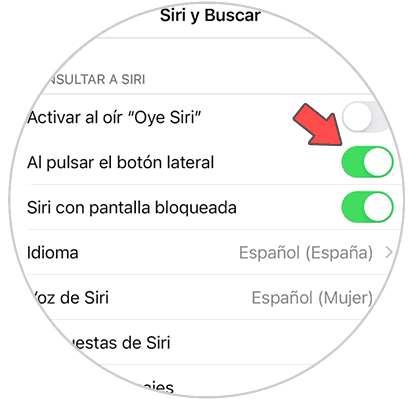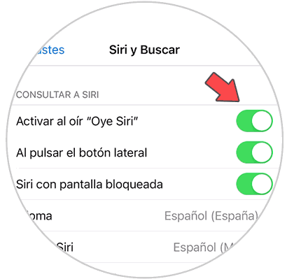 A continuación pulsa sobre “Siri y buscar”. Ahora tienes que activar el apartado que pone "Activar al oír, oye Siri"