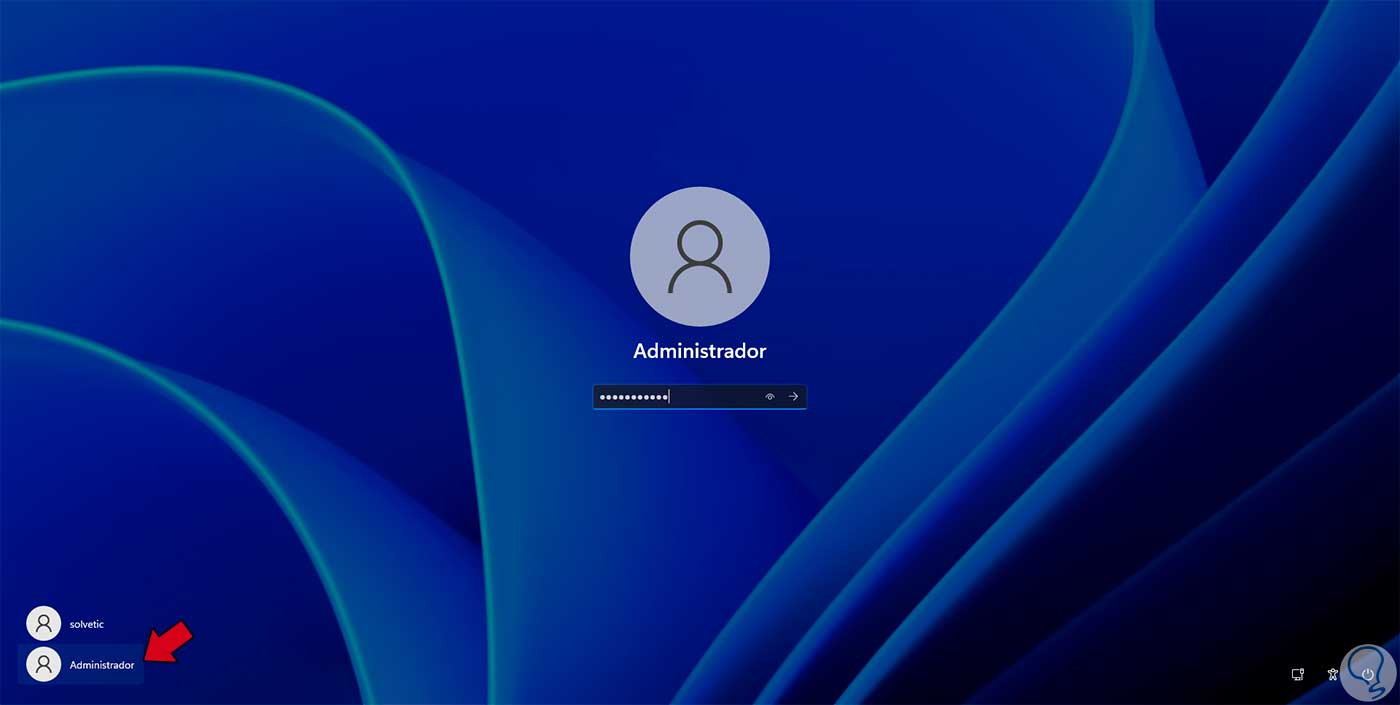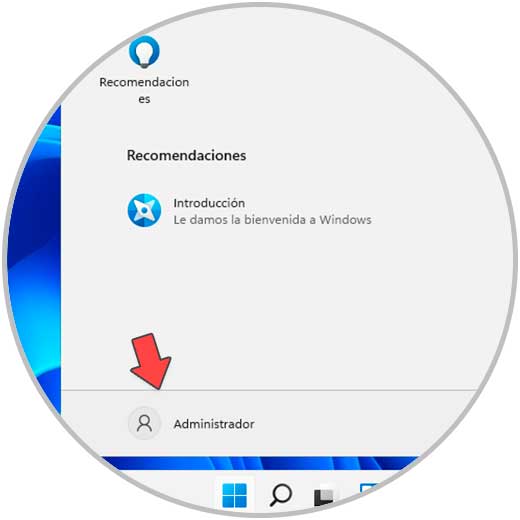 Después de ser reiniciado, estará disponible el usuario Administrador en la parte inferior izquierda: