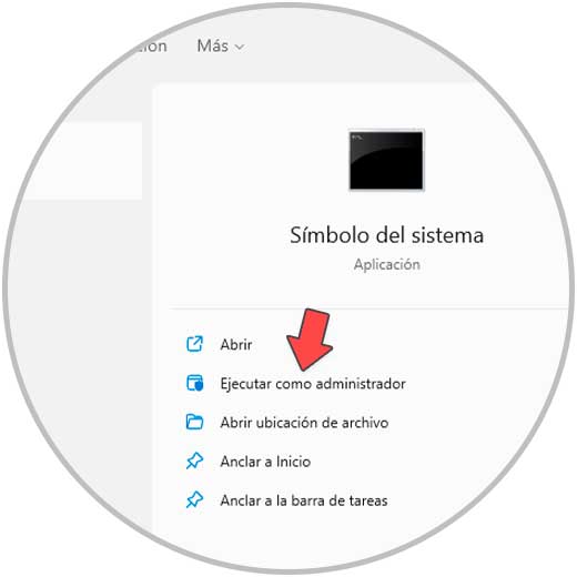 Finalmente, la consola de CMD es otra de las opciones a usar para restablecer las GPOs en Windows 11, para lograrlo abrimos CMD como administrador: