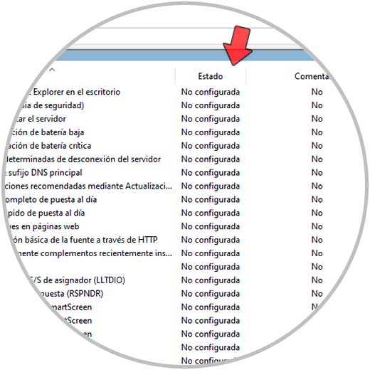 Pulsamos en la columna "Estado" para ordenar los elementos según su estado actual los cuales pueden ser: