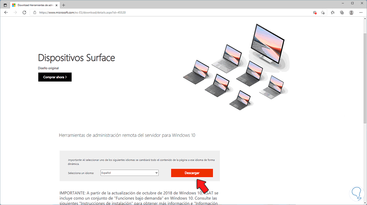 Allí seleccionamos el idioma y damos clic en Descargar, luego seleccionamos la versión deseada: