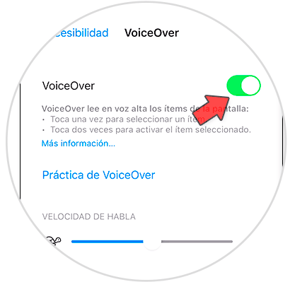 Puedes activar o desactivar el VoiceOver desde el botón que aparece al lado