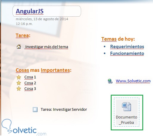 1- Nos posicionamos en la página en la cual queremos insertar el archivo y hacemos click sobre la pestaña Insert y seleccionamos la opción Attach File: