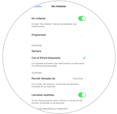 Dentro del modo “No molestar”, vas a poder configurar aspectos cómo: