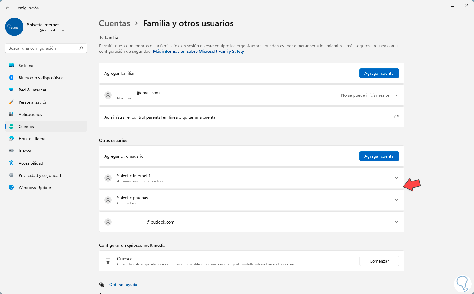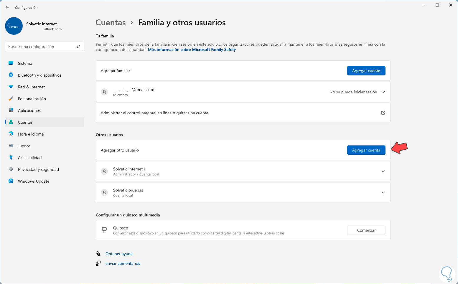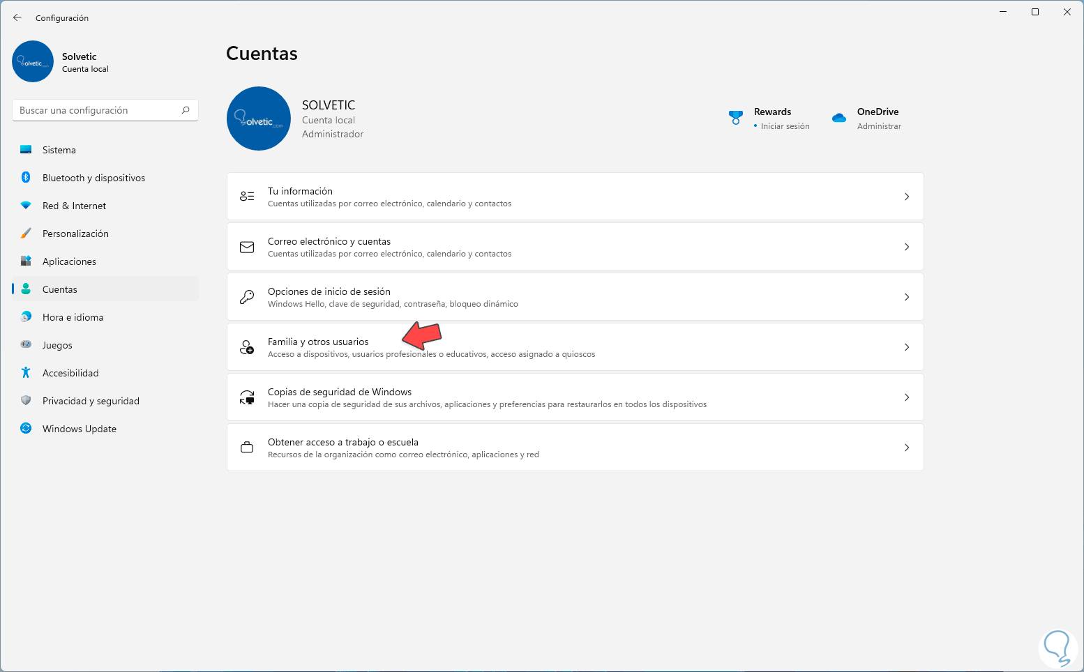 Luego vamos a “Cuentas - Familia y otros usuarios”: