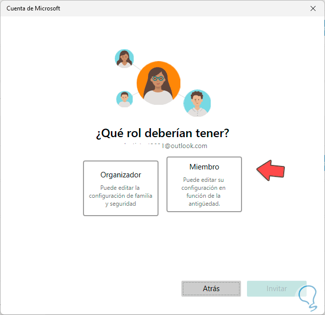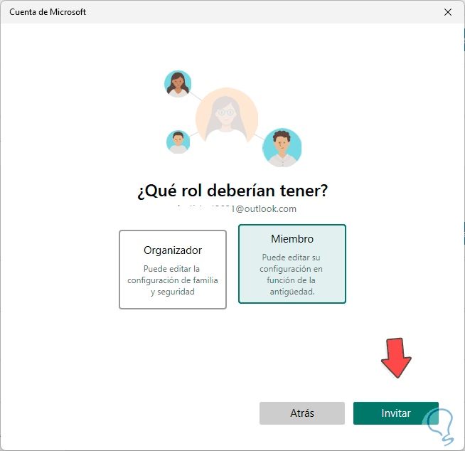 Como vemos, si se establece con un perfil de Organizador podrá administrar los diversos miembros del grupo y si se crea con el perfil Miembro solo puede editar sus propiedades pero después de cierto tiempo, seleccionamos el rol y damos clic en "Invitar":