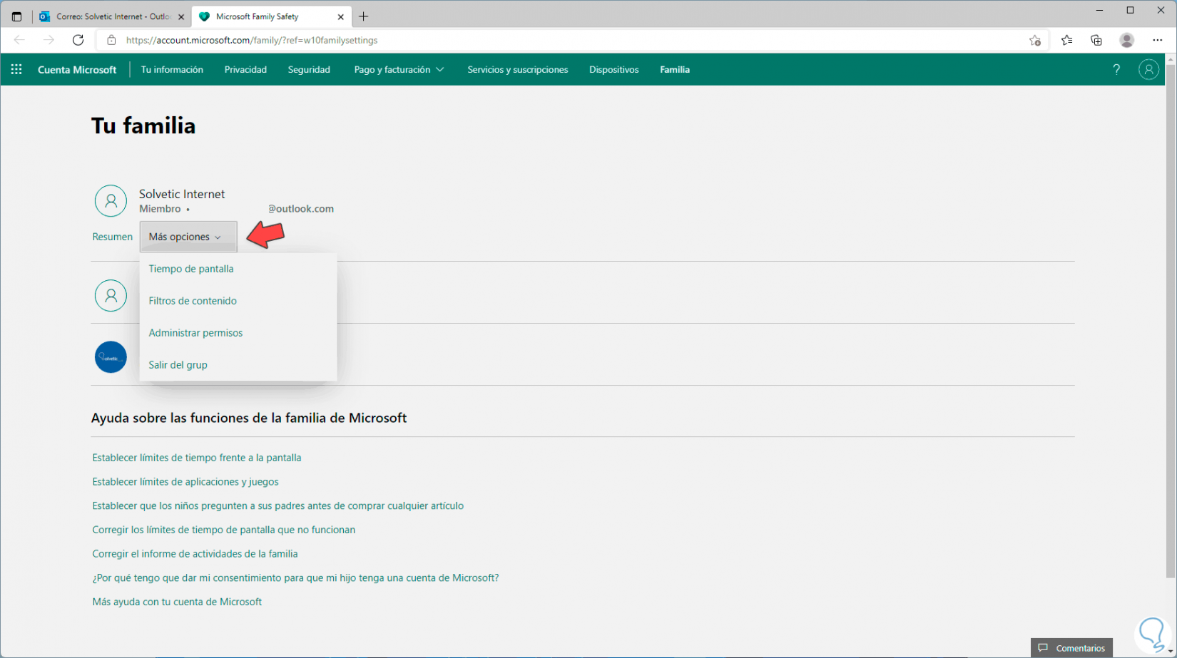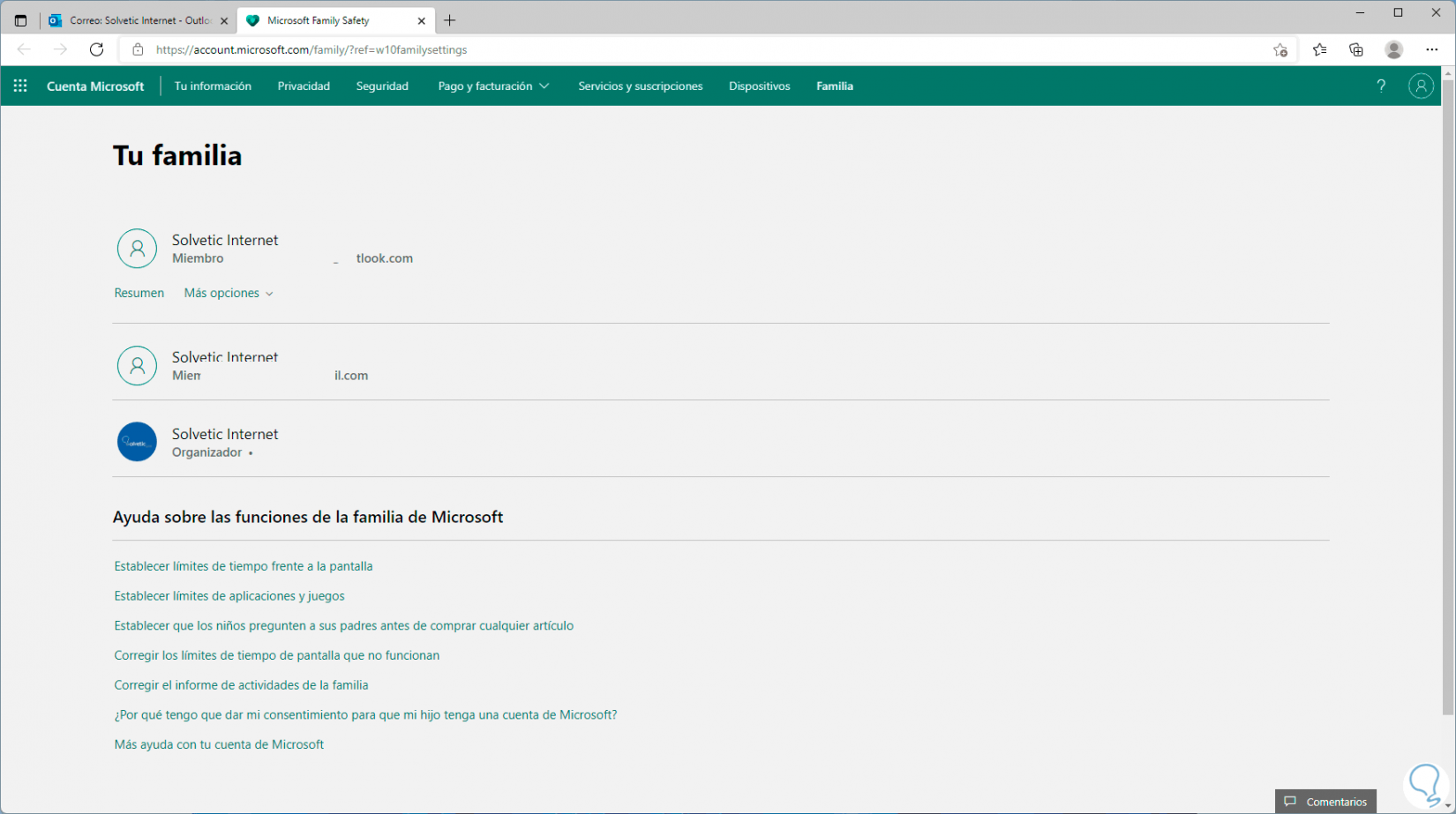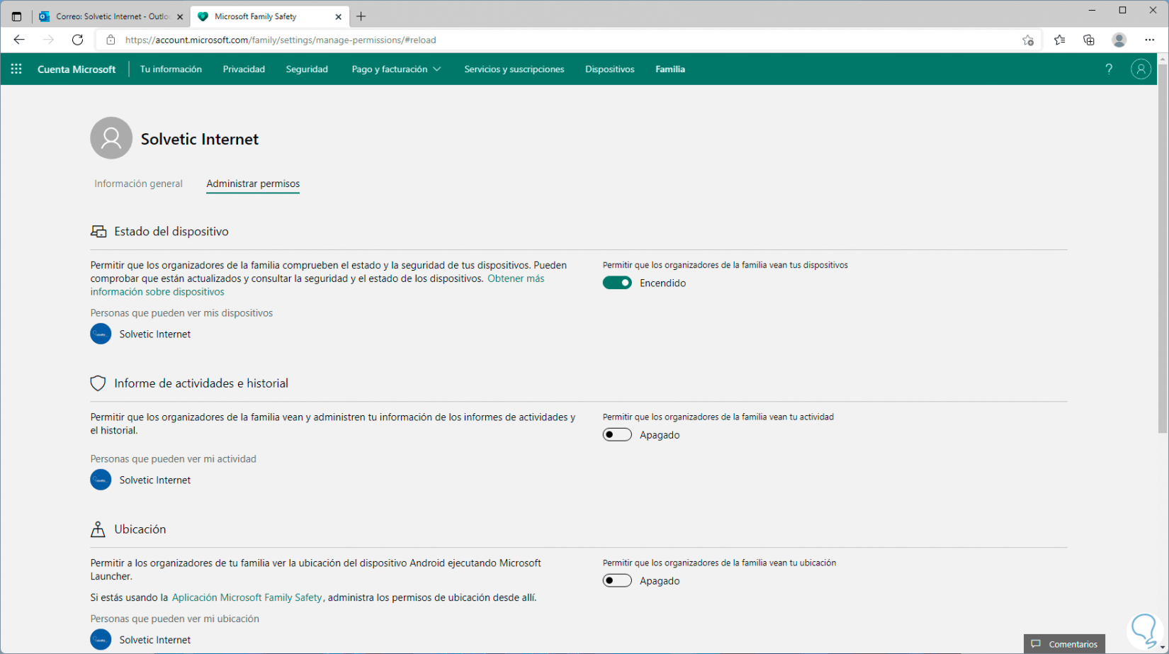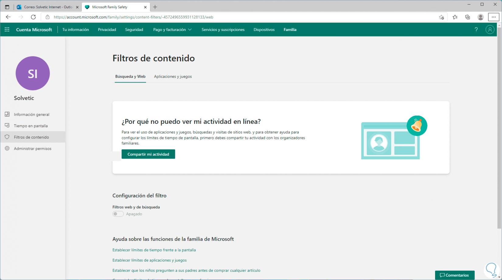Cada una de estas funciones tiene como finalidad evitar que la persona que se vincula al equipo a través de Familia, pueda ser monitoreado para evitar que ingrese a sitios web no adecuados o permitidos, evitar que pase más tiempo del necesario en el equipo y mucho más, Solvetic te explicara como habilitar o deshabilitar esta función en Windows 11.