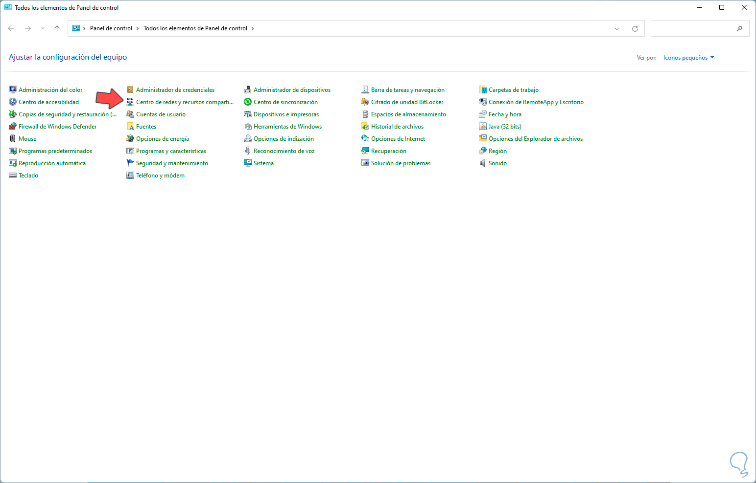 Desde el Panel de control es posible trabajar con la configuración de red para su restablecimiento, abrimos el Panel de control:
