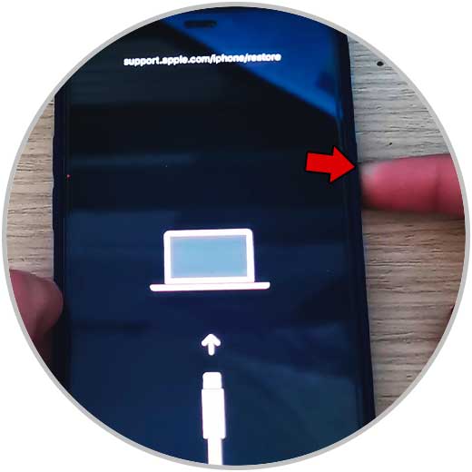 Lo primero que haremos será conectar por cable el iPhone a un PC que tenga iTunes. Pulsa rápidamente los botones de "Subir volumen" y después "Bajar volumen".