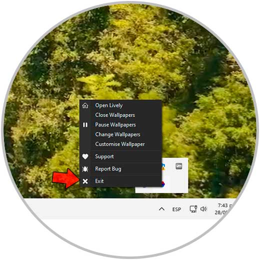 Desde la barra de tareas damos clic derecho sobre el icono de la app y seleccionamos "Exit":