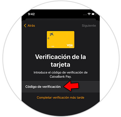 Una vez que has introducido los datos de la tarjeta que quieres usar para pagar con el Apple Watch, tendrás que meter el código de verificación de la tarjeta que llegará a tu teléfono vía SMS.