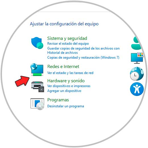 Luego veremos las siguientes opciones. Vamos a “Redes e Internet"