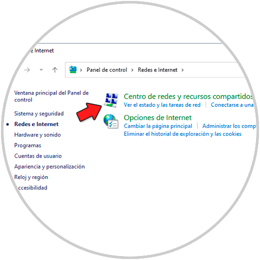 Ahora pulsa en "Centro de redes y recursos compartidos”:
