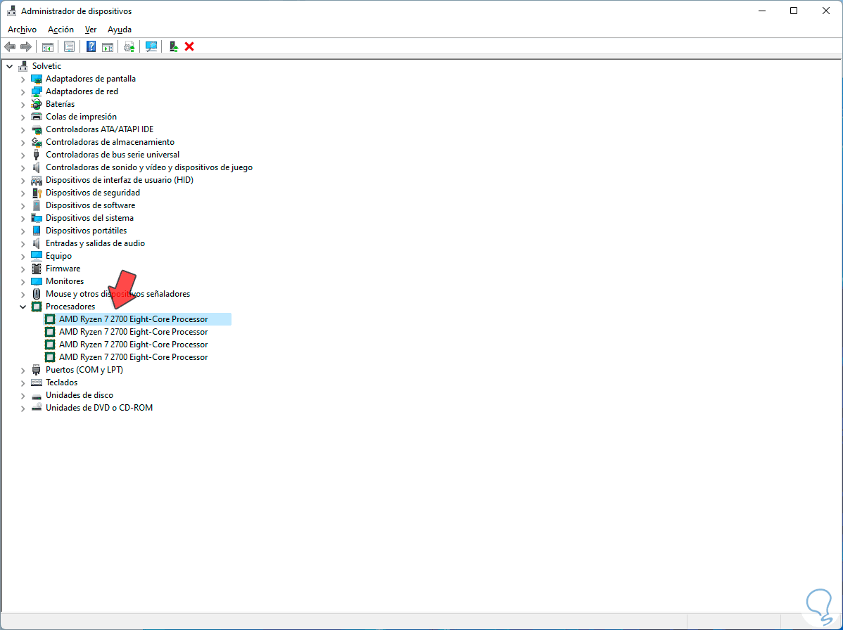6. Saber procesador de mi PC Windows 11 con Administrador de dispositivos