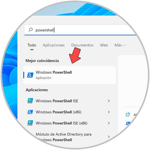 Al igual que CMD la consola de PowerShell es otra de las soluciones a usar, abre PowerShell desde Inicio:
