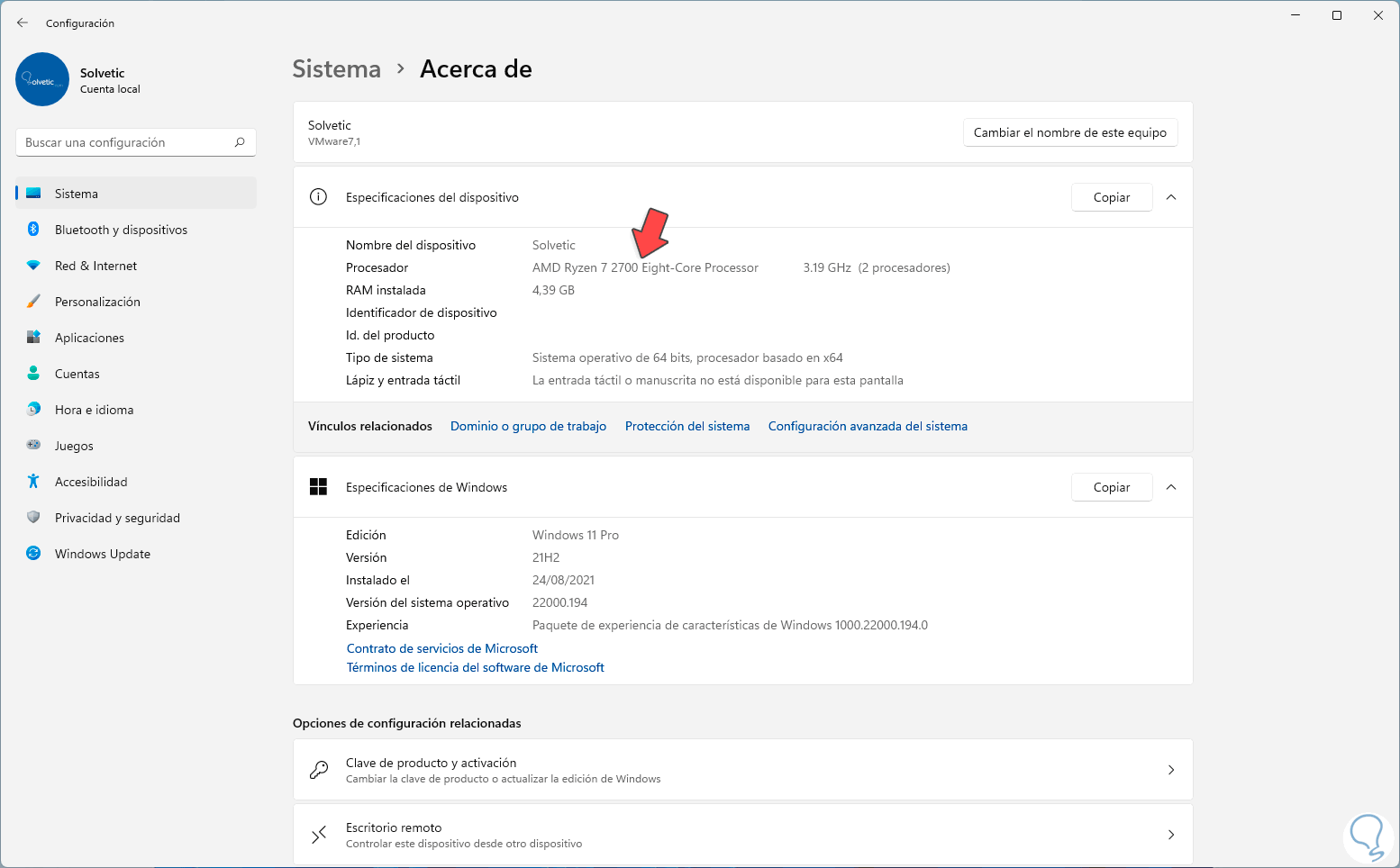 1. Saber procesador de mi PC Windows 11 con Configuración