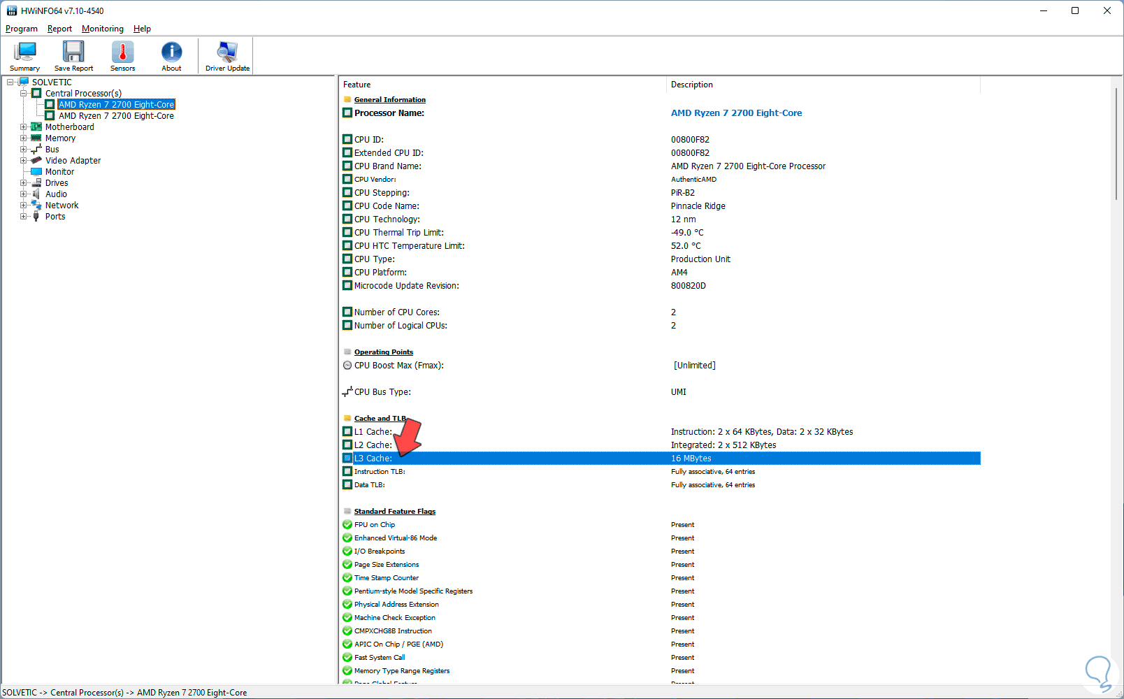 Abrimos la utilidad y en "Resumen del sistema" seleccionamos "Procesador" para ver los detalles de este: